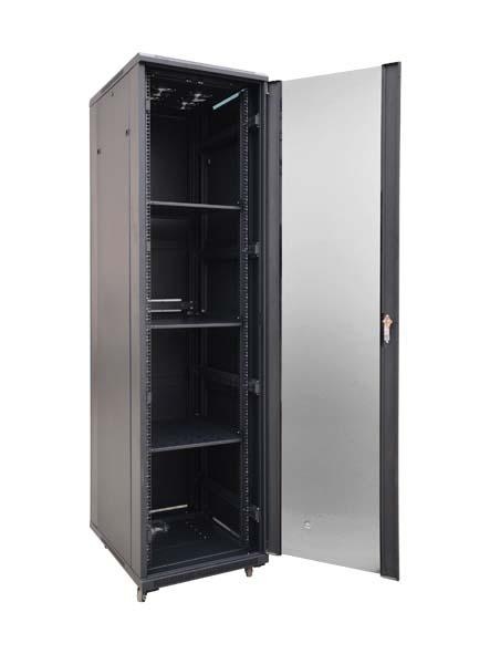 標(biāo)配:前玻璃門、柜體、19英寸立柱、接地套件、門鎖、后門,層板2塊;